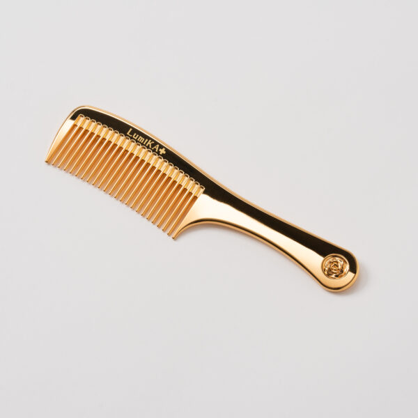 経済産業省ものづくり日本大賞受賞の技術者が、匠の技で作りあげた24金めっき光沢仕上げの優美なコームです。