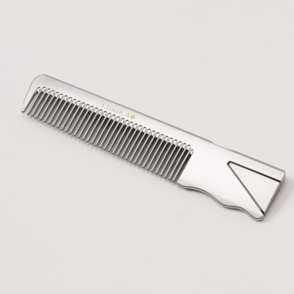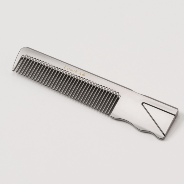 プラスチック上にメッキを施したメタルコームです。携帯にも便利なポケットサイズ。細かい目のコームはスタイリングの仕上げや前髪のセットなど、